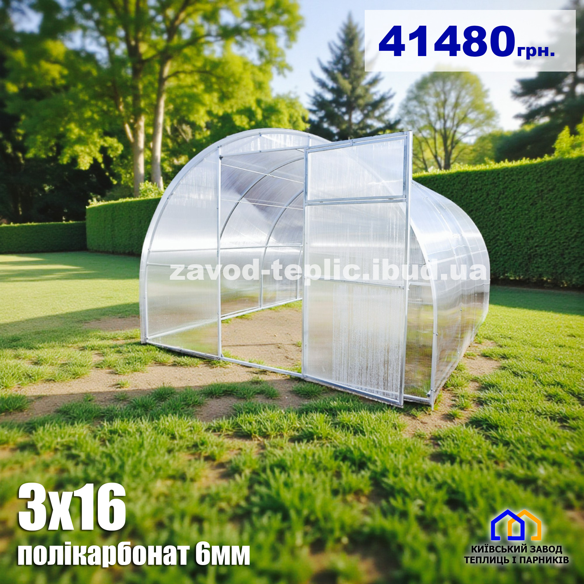 Теплиця з полікарбонатом 6 мм Слов`яночка 3х16